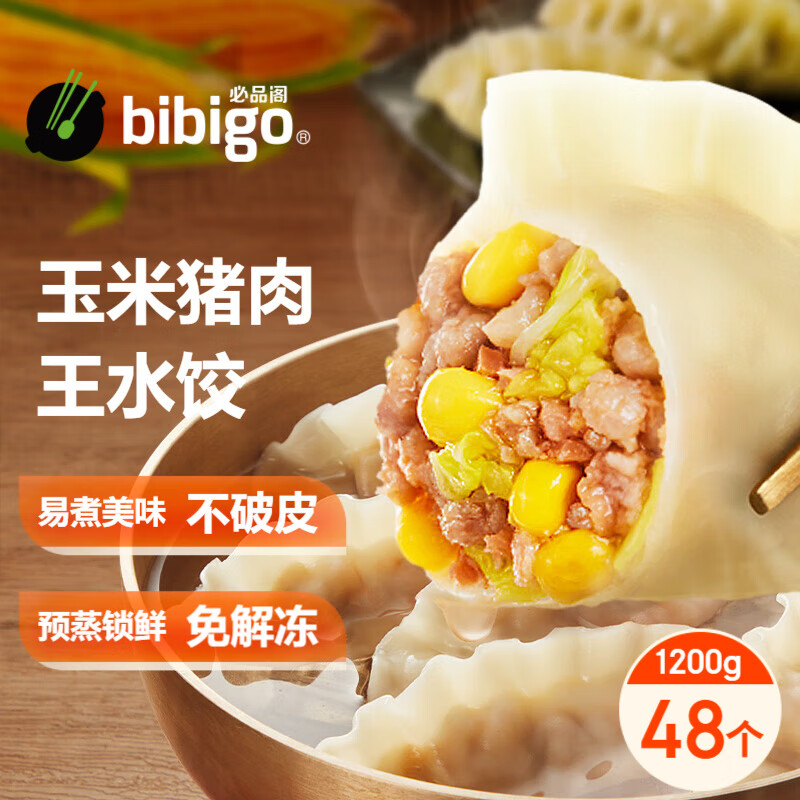 必品阁(bibigo)玉米蔬菜猪肉王水饺 1200g 约48只 早餐夜宵速冻饺子