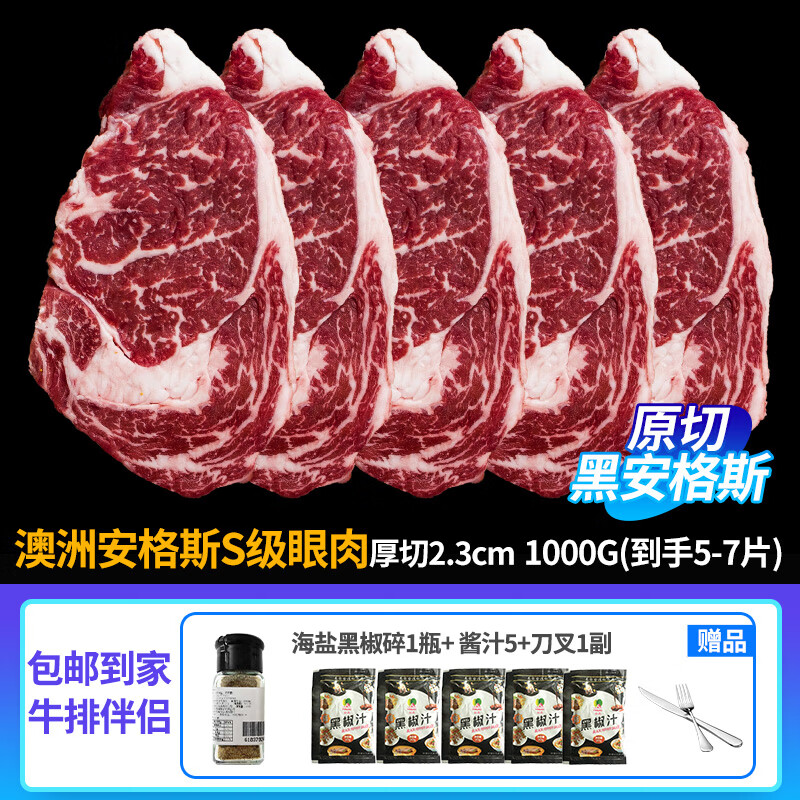 阿彭澳洲进口安格斯谷饲板腱和牛雪花牛排厚原切牛肉新鲜眼肉西冷菲力 M2澳洲安格斯S级眼肉5~7块1000克