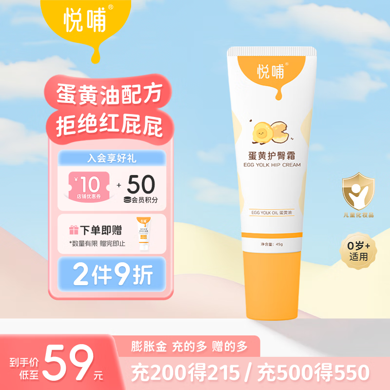 悦哺婴儿护臀膏 宝宝屁屁乐膏蛋黄油配方新生儿护臀霜舒缓红屁屁 护臀膏 45g