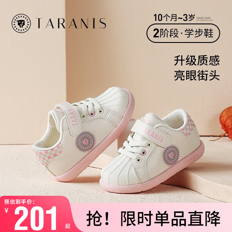 泰兰尼斯秋季新款女童鞋婴儿学步鞋防滑软底宝宝鞋休闲包头机能鞋 白/粉 25码 鞋内长16.0cm 适合脚长15.0