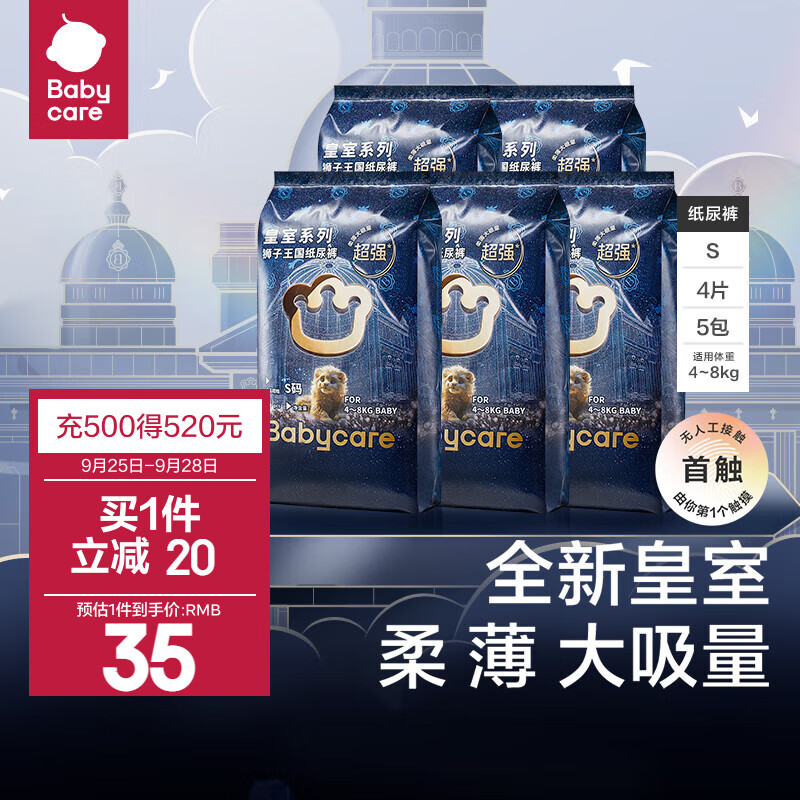 bc babycare纸尿裤皇室狮子王国婴儿尿不湿宝宝夏季薄透气夏天迷你独立便携装 纸尿裤S 5包 20片 【适合4-8KG】