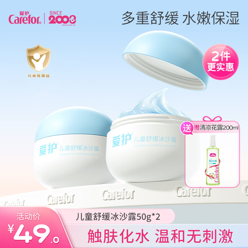爱护冰沙霜四季宝宝儿童面霜专研冰沙露草本芦荟降温晒后舒缓补水保湿 【实惠装】冰沙霜50g*2盒