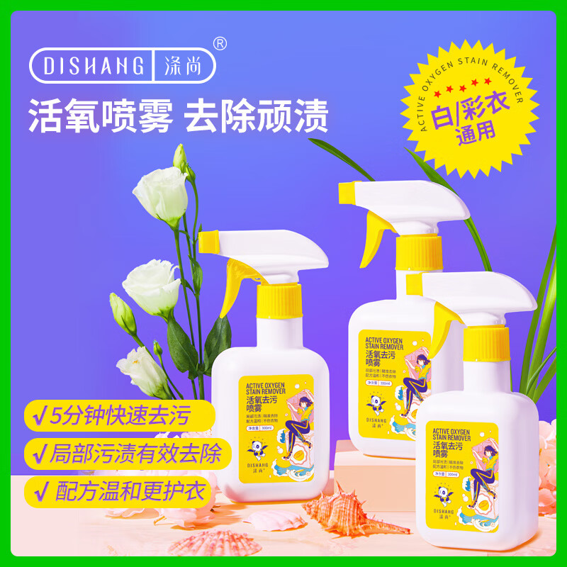 涤尚活氧去渍喷雾300ml衣领净强力去污去黄袖口白衬衫预洗剂增白 300ml/瓶*3瓶