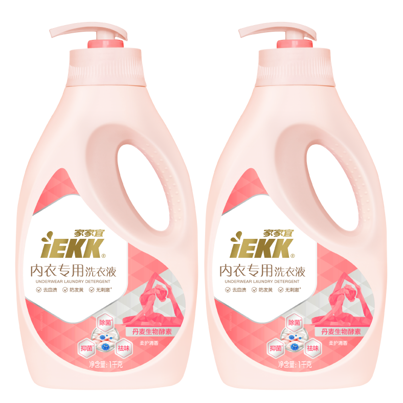 家家宜 柔软蓬松手洗洗衣液 增柔护色4斤内衣手洗泵装易清易漂 手洗柔软液兰1kg*2瓶