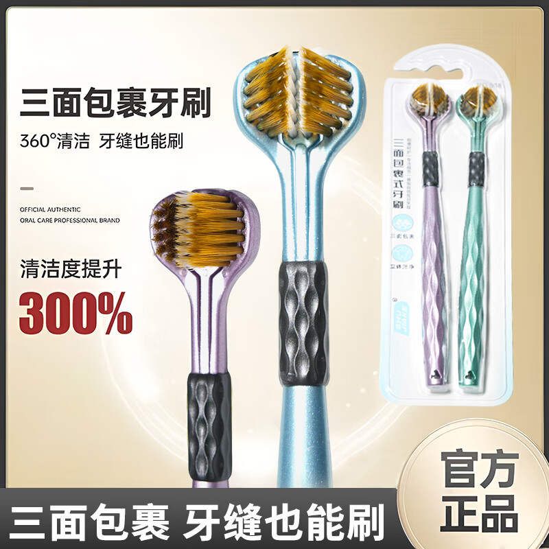 微娜牙刷三面软毛牙刷成人包裹式牙刷深层清洁牙齿牙缝家庭装 360°护龈(三面软毛) 4支
