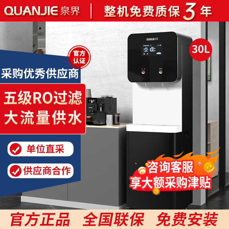 泉界直饮水机商用净水器RO反渗透加热一体机公司工厂大流量直饮机办公室大型直饮水机一开一直饮 QJ-2WA30(30L ,1开1直饮)