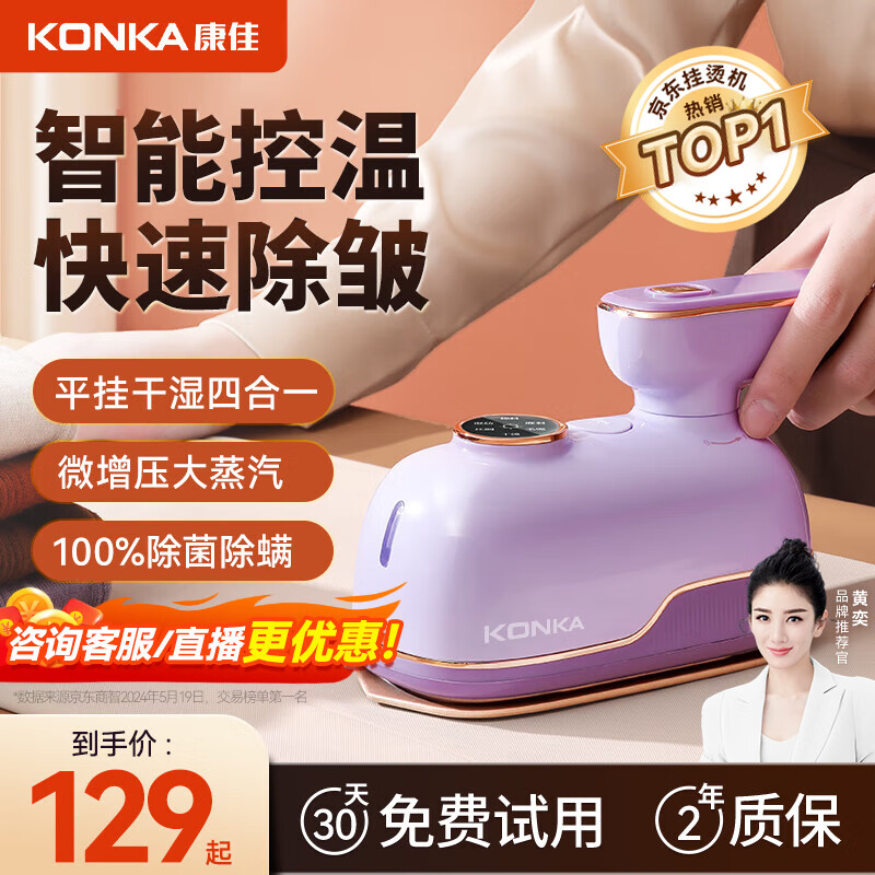 康佳小海豚挂烫机手持家用熨烫机小型蒸气电熨斗便携杀菌除螨电烫斗旅行熨衣机2024新款-A 【微增压防滴水23g/min大蒸汽】香芋紫