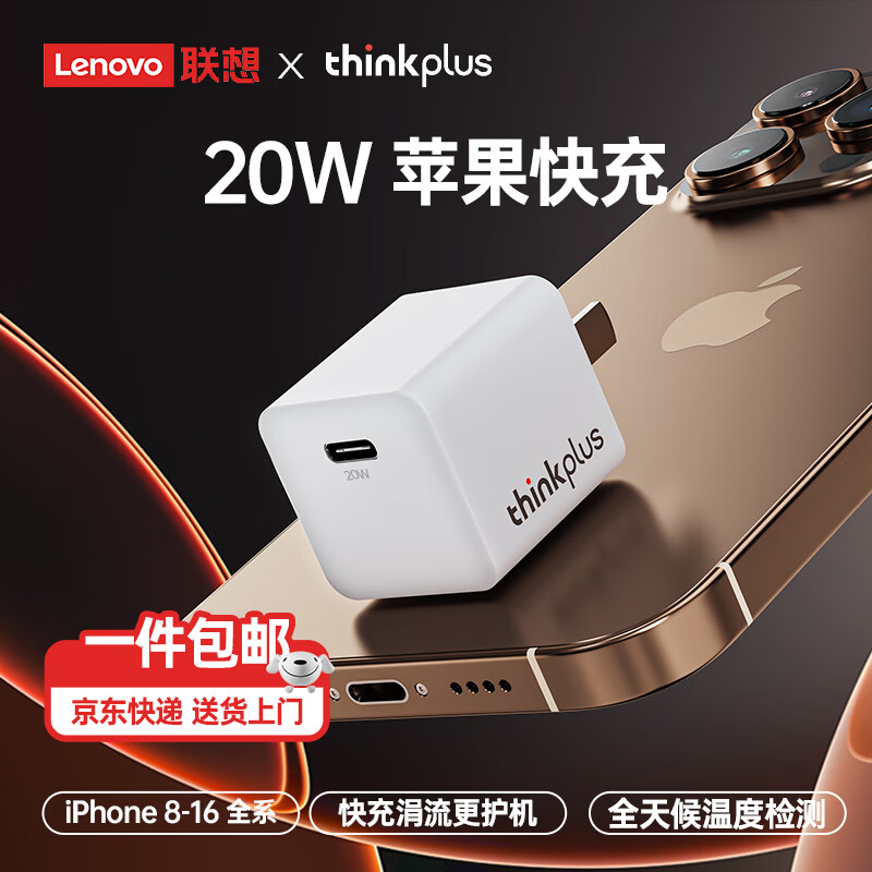 ThinkPlus联想苹果充电器iPhone16/15充电头PD20W快充Type-C适用苹果16ProMax15/14/13/iPad手机 白
