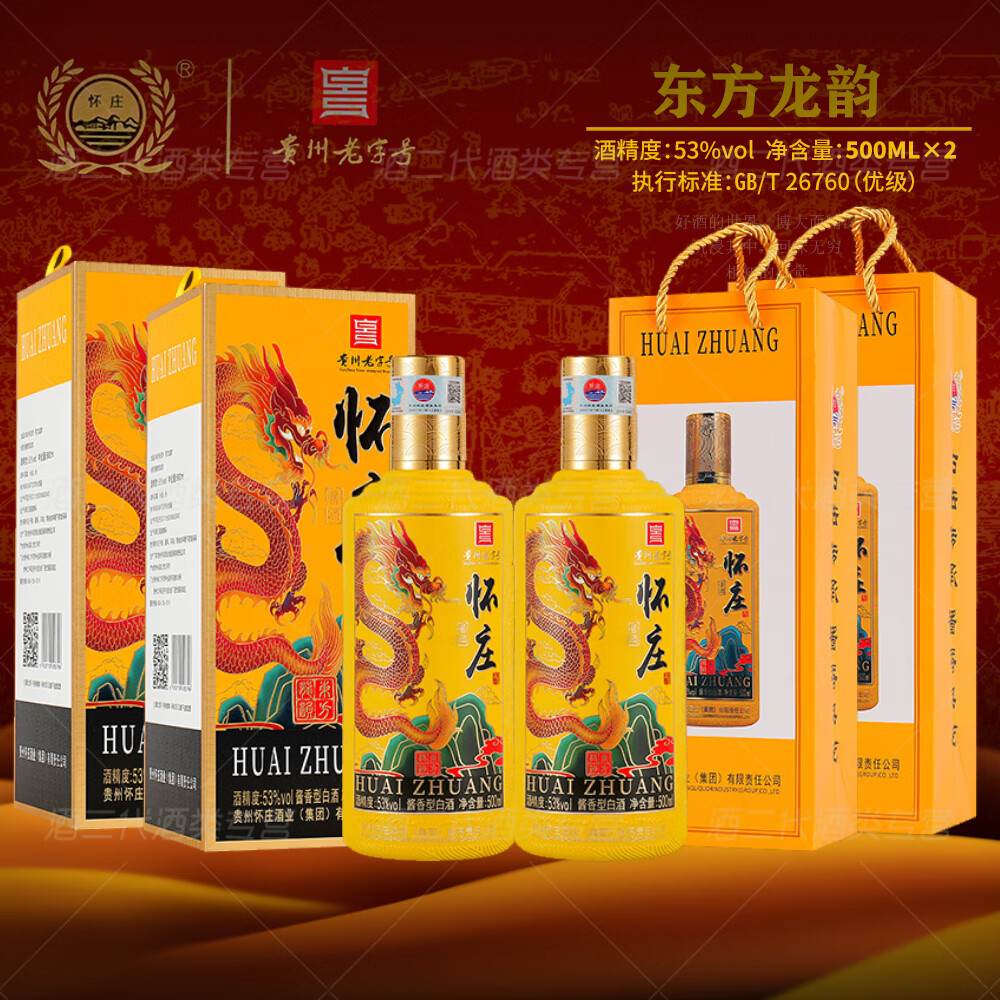 怀庄酒 东方龙韵 53度 酱香型优级白酒 500mL/瓶 礼盒装(商务送礼) 53%vol 500mL 2瓶 【配2礼袋】
