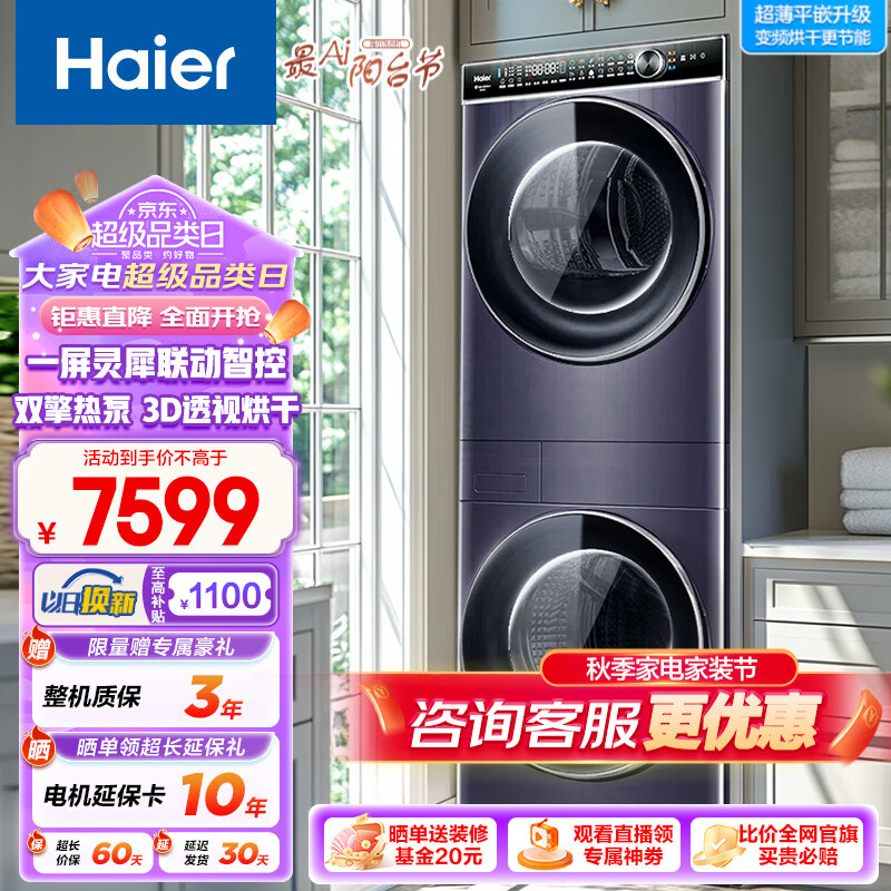 海尔(Haier)叠黛和美H2洗烘套装 10公斤YF10洗烘组合全自动直驱变频超薄平嵌双擎热泵烘干机 以旧换新 叠黛S级超薄YF10丨精华洗2.0+双擎3D透烘干