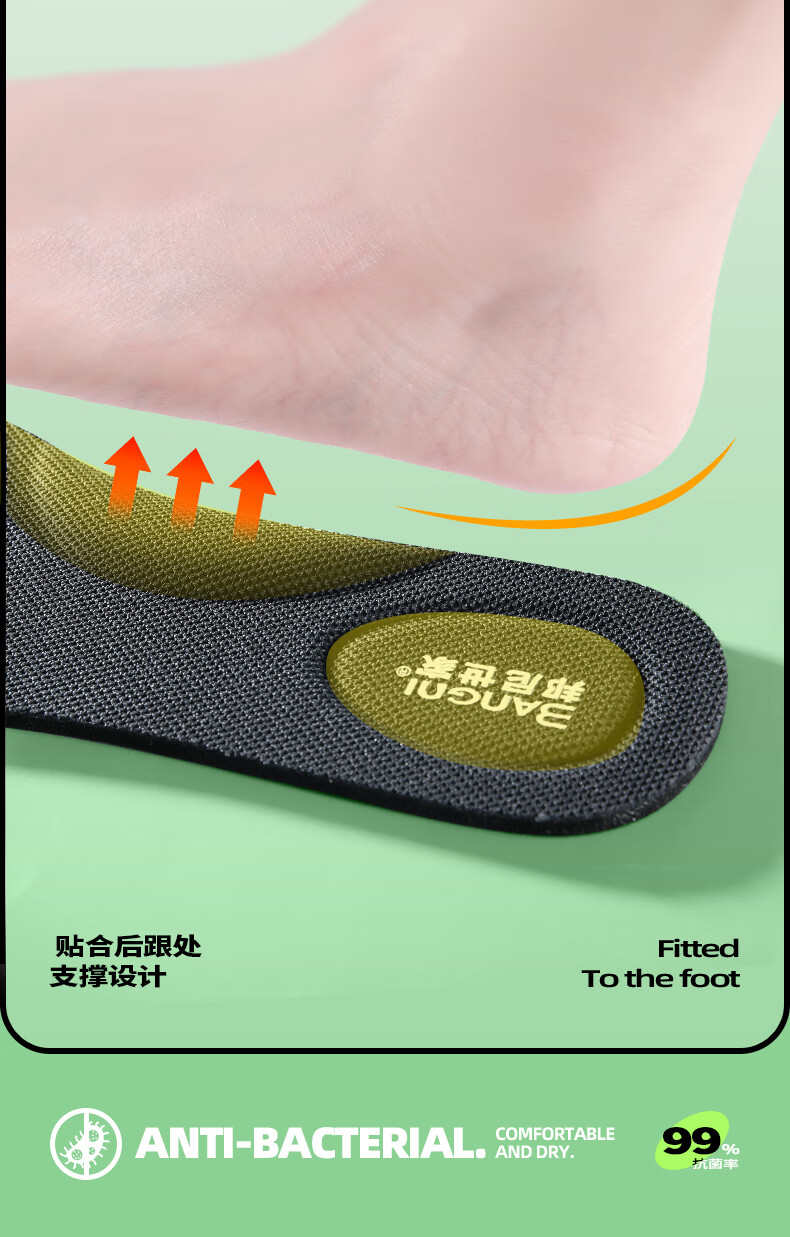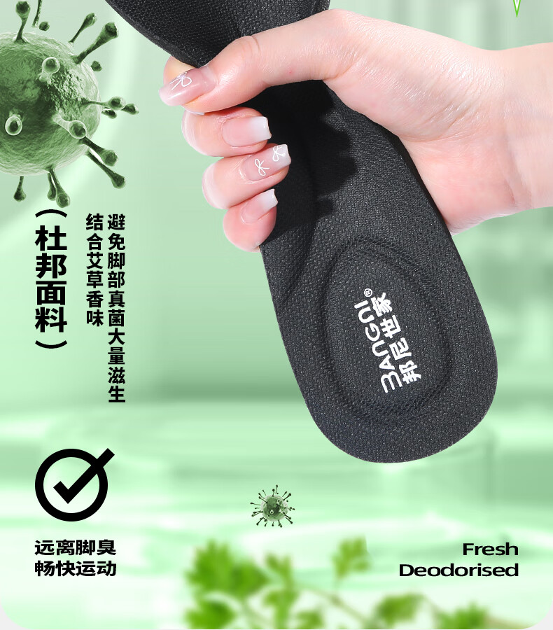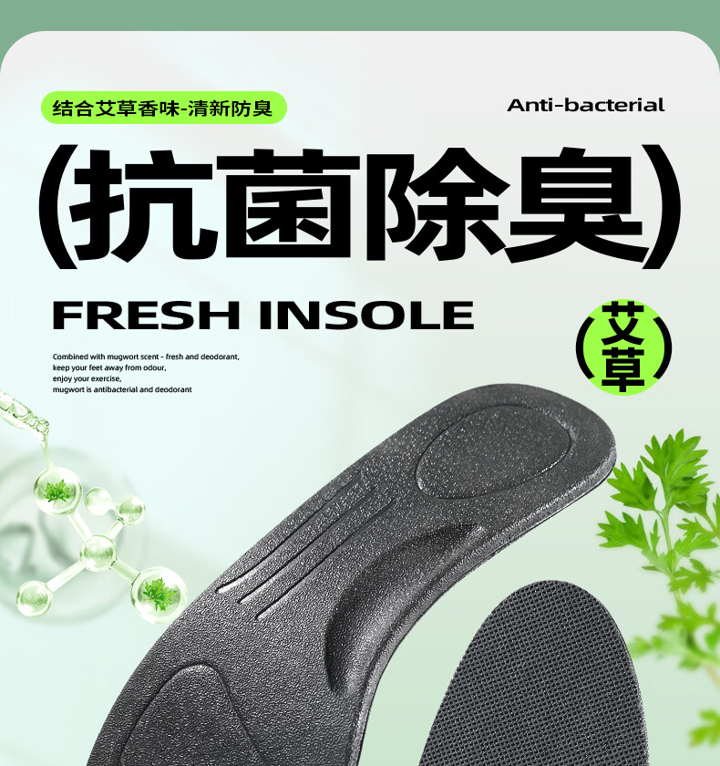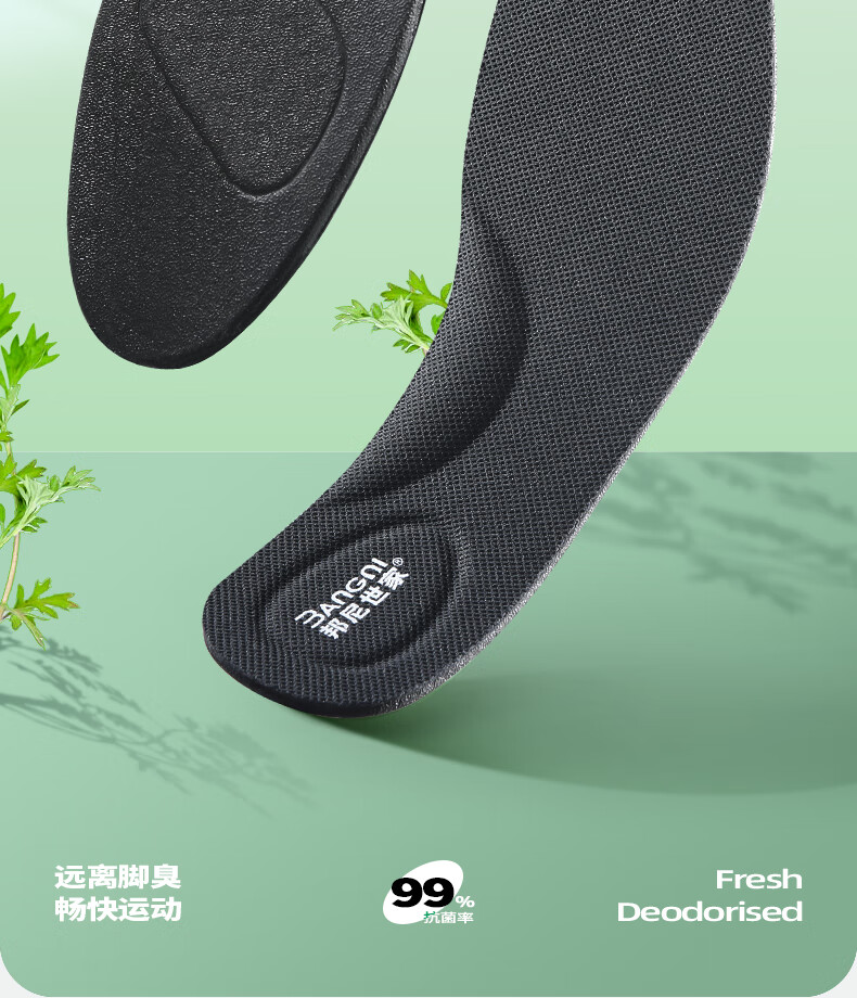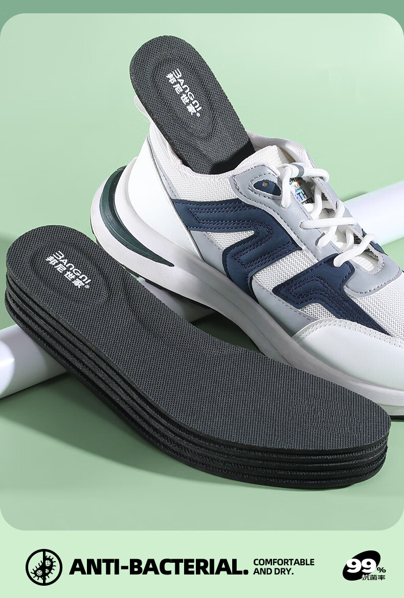 邦尼世家3双运动鞋垫男减震清凉透气软弹抗菌除臭站久不累军训防臭鞋垫 艾草升级【3双装】 45码