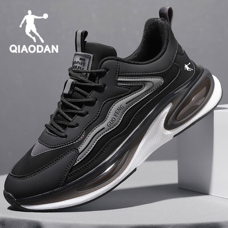 断码乔丹跑步鞋男秋季新款男子轻便缓震运动休闲鞋学生厚底皮面老爹鞋 6218黑色-皮面款 39