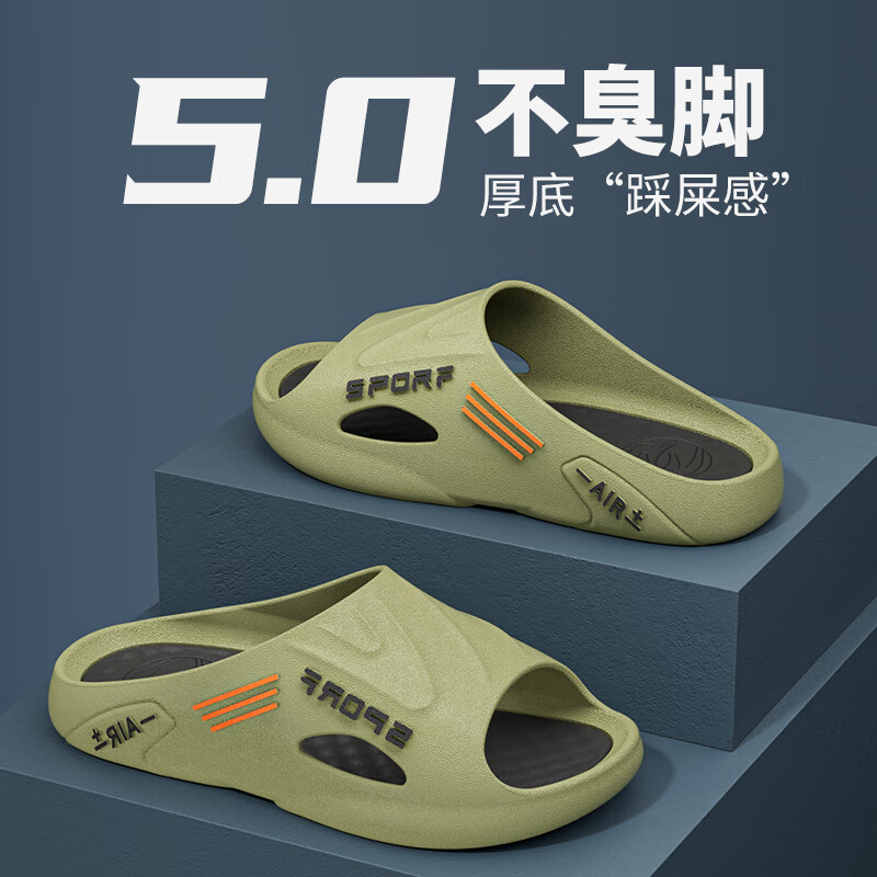 【厚底】防滑休闲男拖新款拖鞋男款外穿运动潮流时尚厚底超软踩屎 C./E.多加】3635】卡其泡水版 40-41./E鞋子偏小