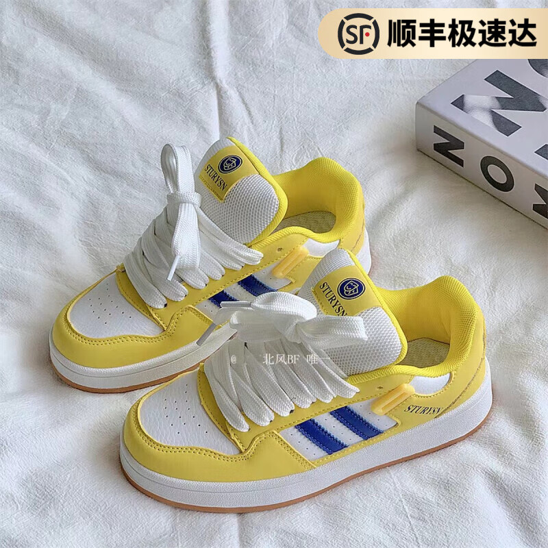 回力洞韩版复古厚底面包鞋女ins学院风百搭小白鞋2024秋季新款休闲板鞋 双杠黄色-B19 40