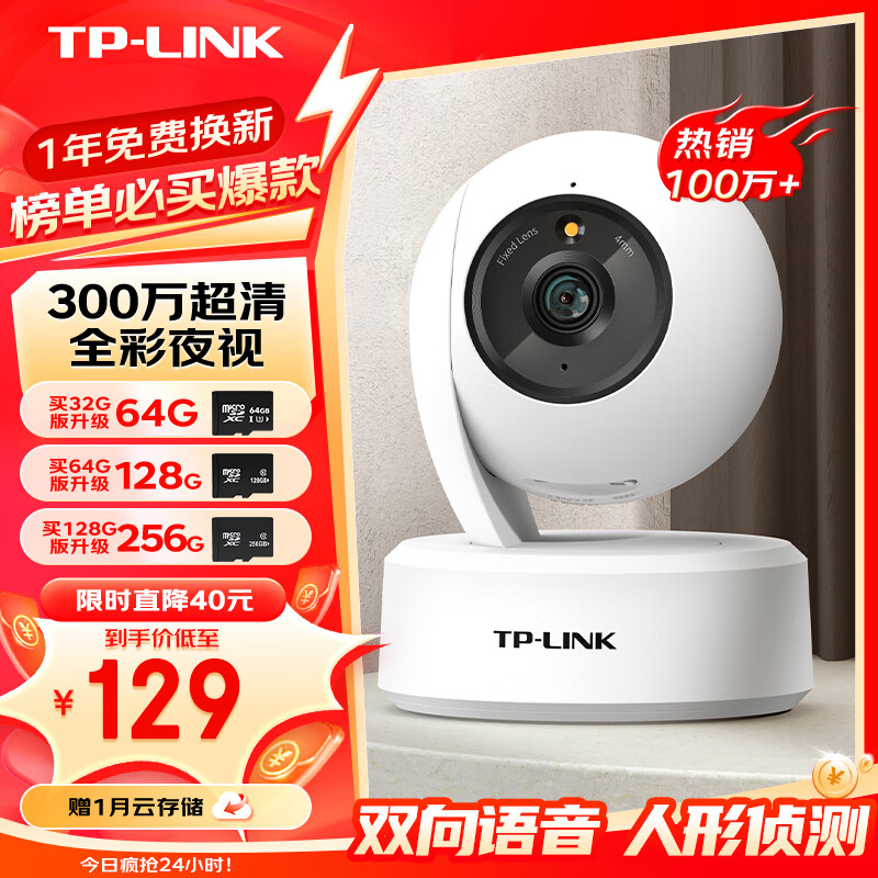 TP-LINK 300万摄像头家用监控器360全景无线家庭室内tplink可对话网络手机远程门口婴儿看护器宝宝监护器